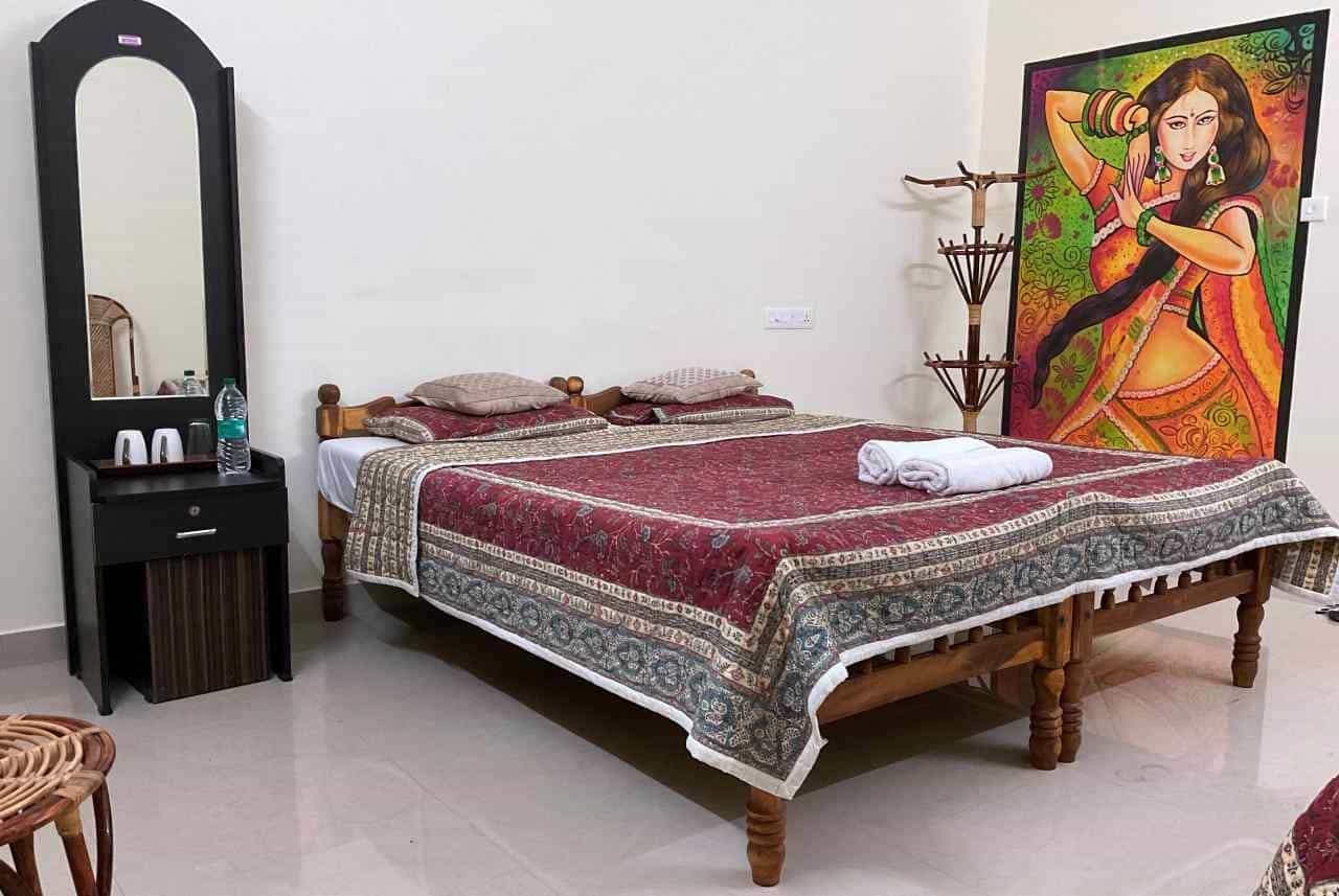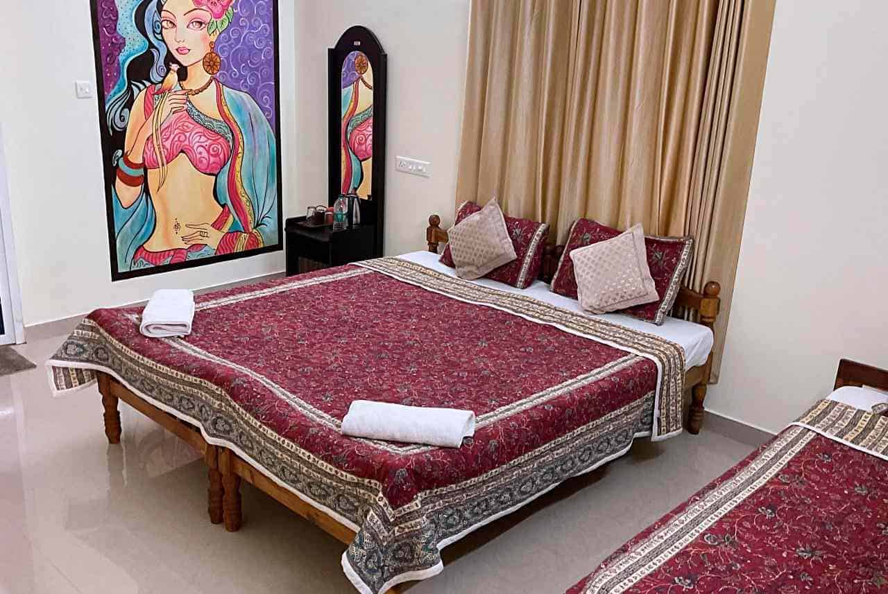 Our hotel has 2 buildings. In one of them we have 6 Standard double rooms with ceiling fan (3 on the top floor and 3 on the ground) and 2 Balcony double rooms with AC. In another building we have 6 rooms, all of them have balcony/terrace, 2 of them with AC, other with ceiling fan.