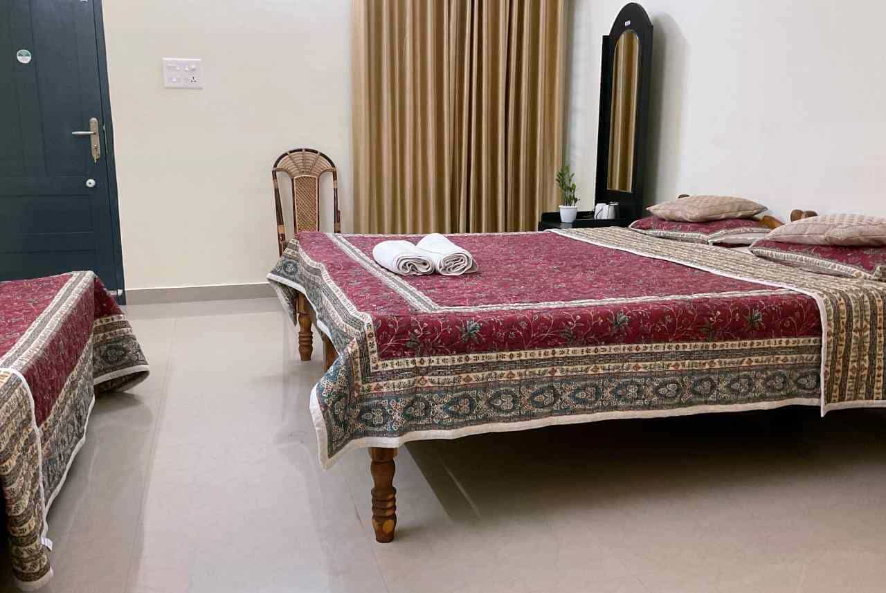 Standard AC rooms have beds with linens, towels, ceiling fan, wardrobe with mirror, attached bathroom with shower and free toiletries.